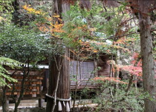三滝の境内にあるお茶屋さん。もみじの林に埋もれるように建っています