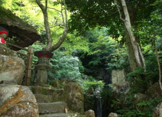 初夏の参道に水音と風と新緑の光が広島市内に夏の日差しが強まるころ、JR可部線、横川駅から次の駅「三滝」から歩いて15分位緩やかの坂道を登り、三滝の境内に入ると、谷間の上から涼風が迎えてくれます。新緑に染まった深山幽谷への散策の始まりです。本堂まで20~30分、三滝の3つの滝、谷あいを流れる水の音、冷たい空気が気持ちよくていつまでも居たいくらいです。