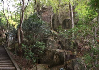 自然の懸崖(けいがい)または大石の表面を磨いて彫刻したもの