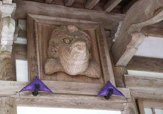 龍神堂の再建に合わせて、本堂に保存されていた古い龍の彫刻が正面に飾られております