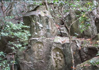 魔崖仏群江戸時代初期に自然の山肌の懸崖(けいがい)に、または大石の表面を磨いて観音33体像が彫られたそうです