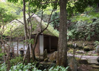 補陀落の庭は昭和30年代後半に、茶室は50年代初期に建てられました。ダマイ・ラマ法王十四世はこの茶室に宿泊さたとのことです