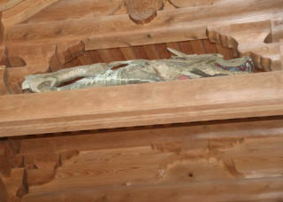 龍神堂の再建に合わせて、本堂に保存されていた古い龍の彫刻が正面に飾られております